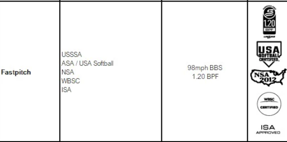 - Certification stamps (USSSA, ASA, NSA, etc.)